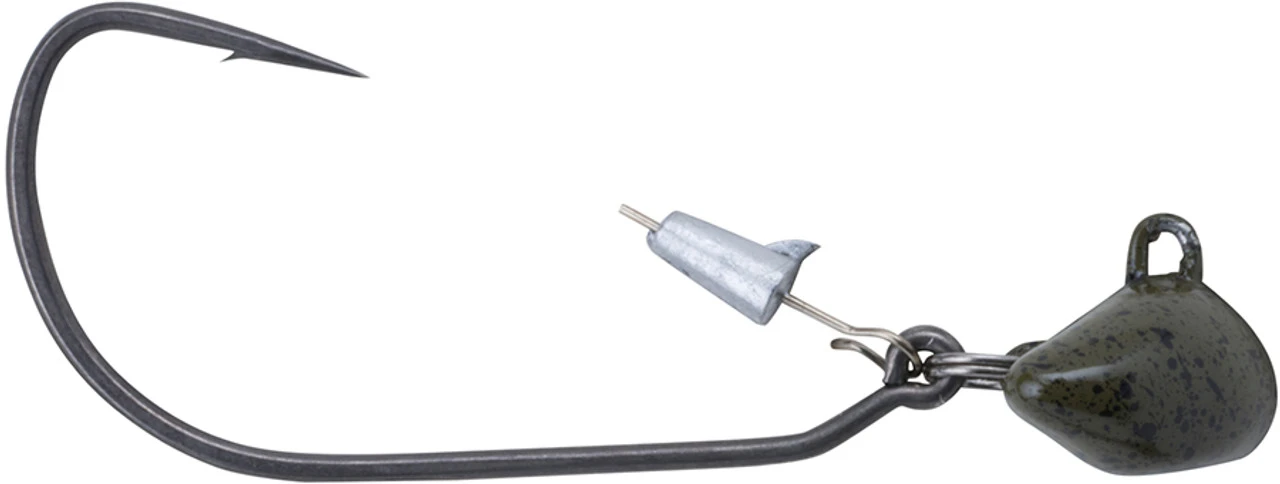 The Berkley Fusion19 Swing Head is the perfect tool for crawling your favorite creature baits across rocky terrain in search of big bottom feeding bass. With a free-swinging EWG hook connected to a widened football head, the attached soft plastic has a wider range of motion, allowing for a more exaggerated swinging action when hopped across the bottom. The rounded head is designed to easily roll its way through rocky terrain and give the trailer an erratic lifelike twitch when it deflects off of hard structure and bottom debris. These jigs feature a unique bait keeper peg that firmly secures the head of soft plastics while the extra wide gap hook leaves plenty of room to allow for secure hook sets with large profile baits. With a durable powder coated head and a rugged forged needle point hook, the Fusion19 Swing Head is up to the challenge of horsing big bass out of their hiding places on heavy braided lines.