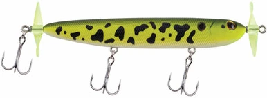 Create a unique topwater action that fish can’t resist with the Berkley Spin Rocket. The Spin Rocket’s slim hydrodynamic profile effectively mimics a minnow as it glides across the surface. Built with clear plastic props that feature a cupped design, the Spin Rocket is capable of imparting action at slower speeds to keep you in the strike zone longer. Rip it, twitch it, or slow roll it across the surface for an irresistible action fish can’t pass up.