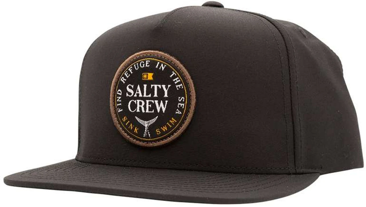 The Salty Crew Fathom 5 Panel Hat is a structured 5 panel hat with Salty Crew woven damask patch across the front.